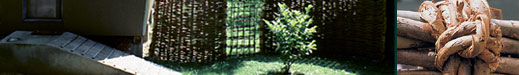 S-förmige Hofbegrenzung mit eingearbeiteten austreibenden Weiden Länge 5 m, Höhe 200 cm